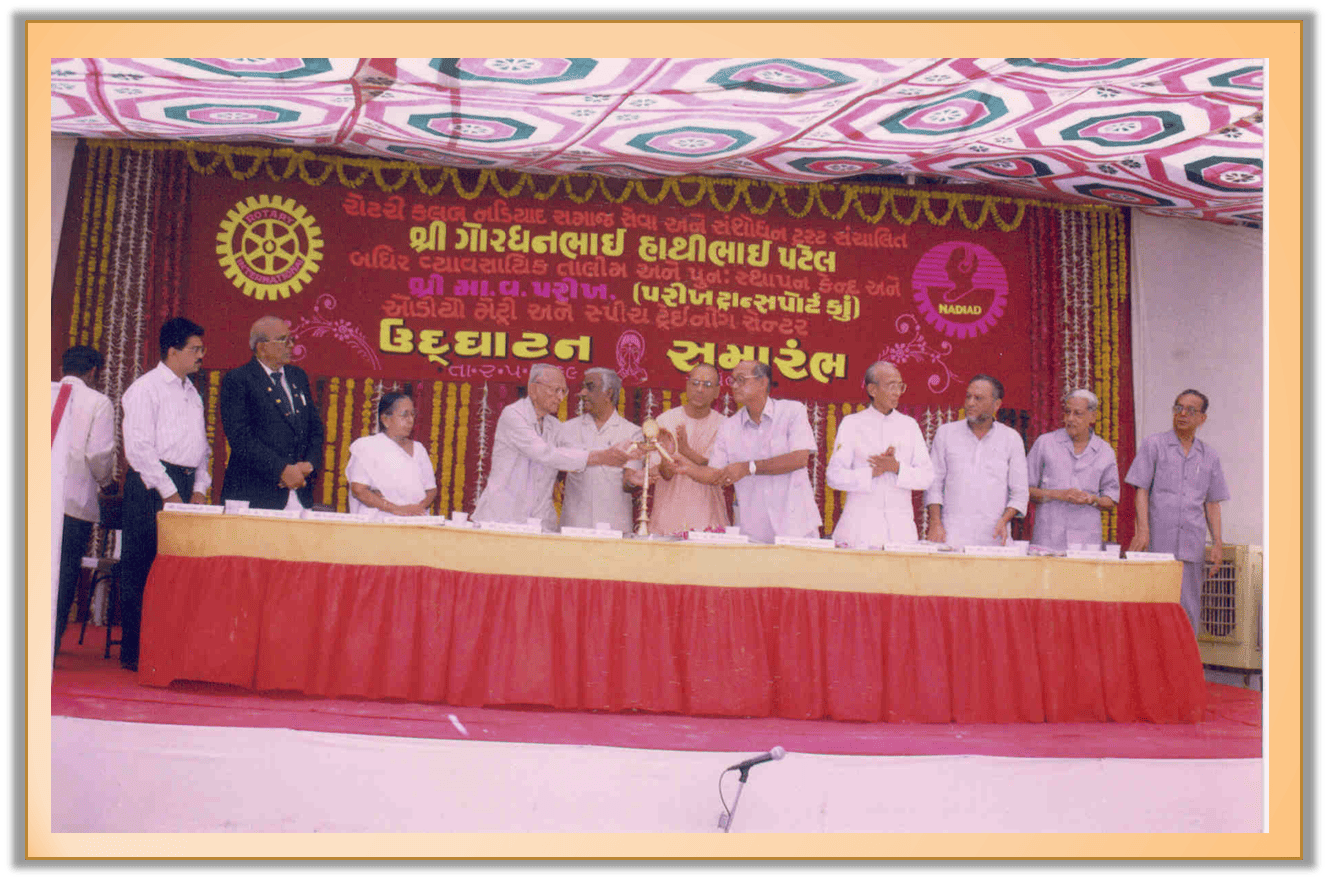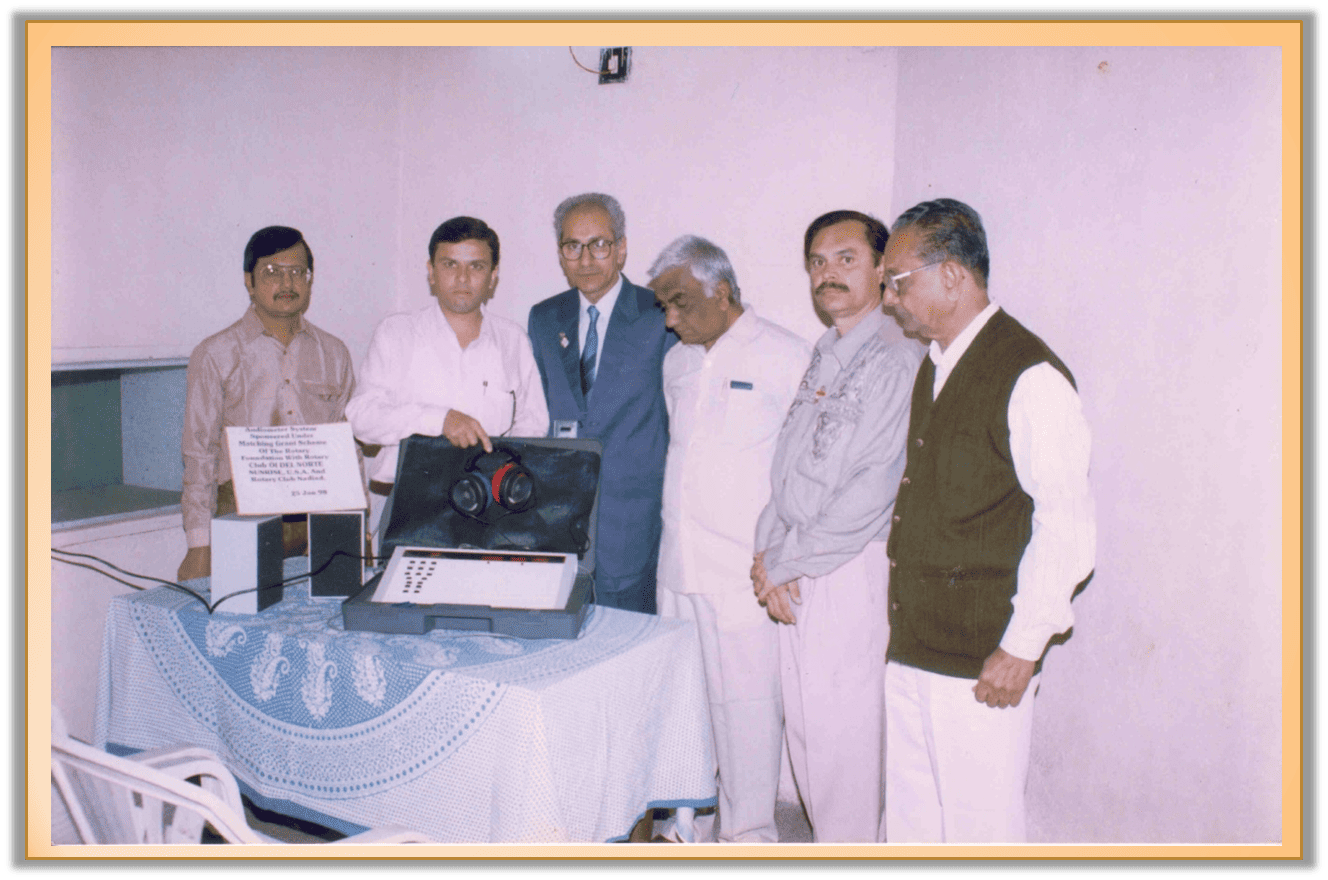 It was in 1976 when the idea to start a project for hearing impaired children was conceived by Rotary Club Nadiad. Kheda district was one of the most prosperous districts of Gujarat. But it had no facility to impart education for deaf children. On 13th July, 1976 Rotary Club Nadiad resolved to form a dedicated Trust viz. Rotary Club Nadiad Samaj seva And Sansodhan Trust to start the project for education and betterment of hearing impaired children. An adhoc committee of 9 members was formed.